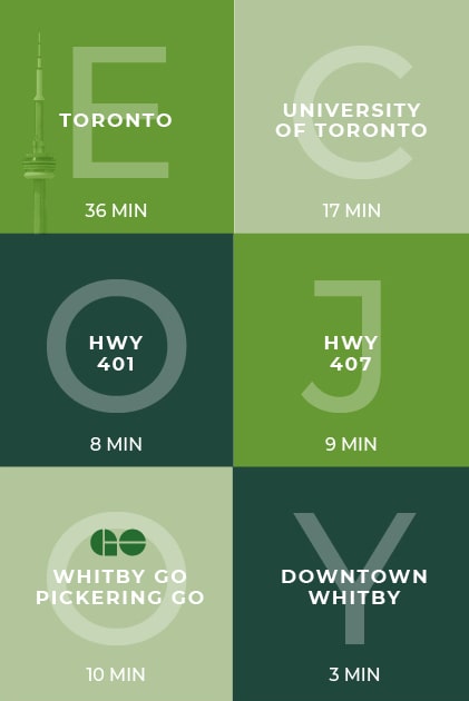 Situated near central Whitby, Rossmont Green is within walking distance to top-rated schools, parks and hiking trails. Boutique shops, outdoor malls, community and medical centres are a 10-minute drive away and access to transit, Whitby GO and Highways 401, 412 and the 407 are all around the corner.